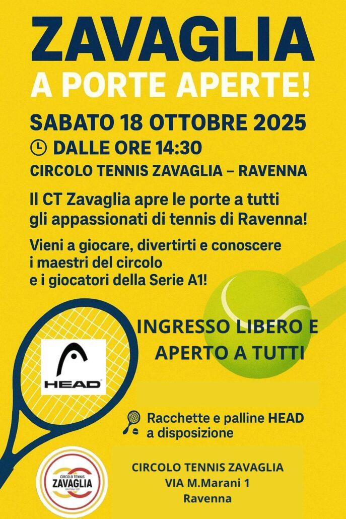 Porte aperte al Circolo Tennis Zavaglia sabato dalle 14.30: tutti potranno giocare con i maestri ed i portacolori della A1 in un pomeriggio di full immersion sportiva