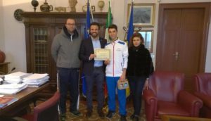 Il giovane Paolo Mazzavillani, qui premiato dal sindaco di Cervia, Luca Coffari
