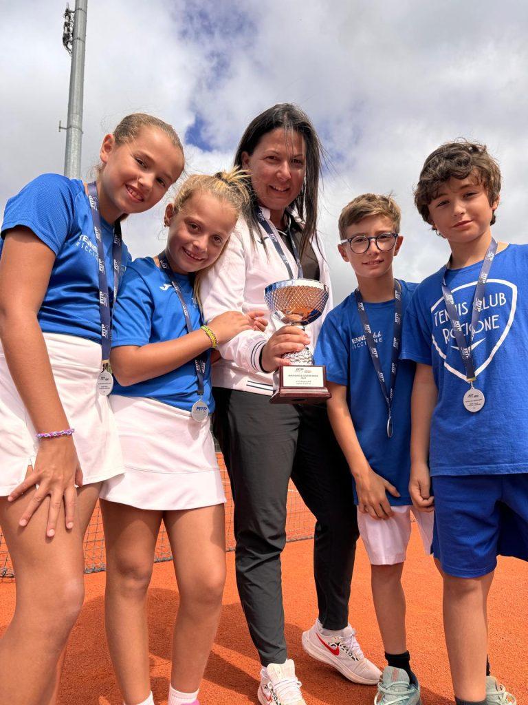 La squadra del Tennis Club Riccione raggiunge la finale nel concentramento di macroarea Centro-Nord Under 10 misto andato in scena nello scorso weekend sui campi della Libertas Sport di Livorno. Il team riccionese composto da Gianmaria Della Rosa, Tommaso Scungio, Sofia Sanchi e Rachele Gusella, capitanata dalla maestra Federica Cerri, ha battuto nei quarti il Ct Lucca per 2-1, in semifinale i padroni di casa della Libertas Livorno per 2-1, prima di cedere nel match-clou per 2-0 contro lo Sporting Club Sassuolo. Una prestazione davvero importante per la promettente formazione riccionese che si piazza così tra le prime dieci squadre in Italia.