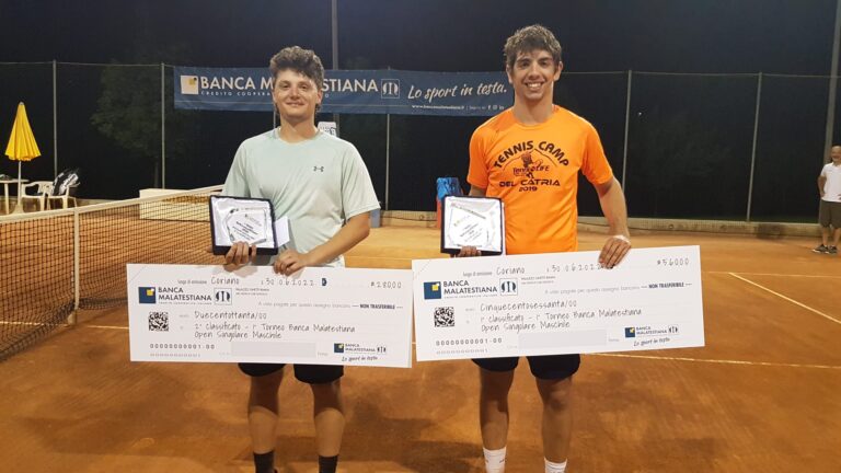 Con la vittoria di Giovanni Femia si è concluso, sui campi del Ct Coriano, il trofeo “Banca Malatestiana”, il torneo nazionale maschile limitato ai 2.6 e dotato di 1400 euro di montepremi. Nel match-clou il portacolori della Coopesaro Tennis ha battuto Giacomo Magnani (Ct Village Molinella) con il punteggio di 6-7, 6-2, 10-4.