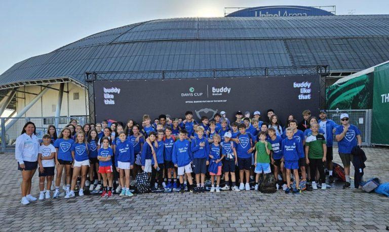 Gli allievi della scuola tennis ed agonistica del Tennis Club Riccione alla Coppa Davis. Un bel gruppo di 73 giovani e giovanissimi tennisti della Perla Verde, seguiti dalla maestra Federica Cerri e dal preparatore atletico Daniele Sammaciccia, hanno assistito oggi all’Unipol Arena di Casalecchio al match Olanda-Belgio che ha aperto la settimana bolognese con la Coppa Davis. E oggi si replica per l’esordio della squadra azzurra contro il Brasile.