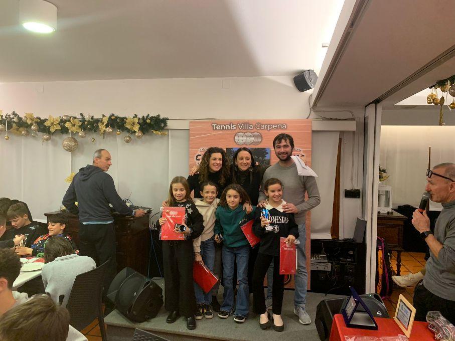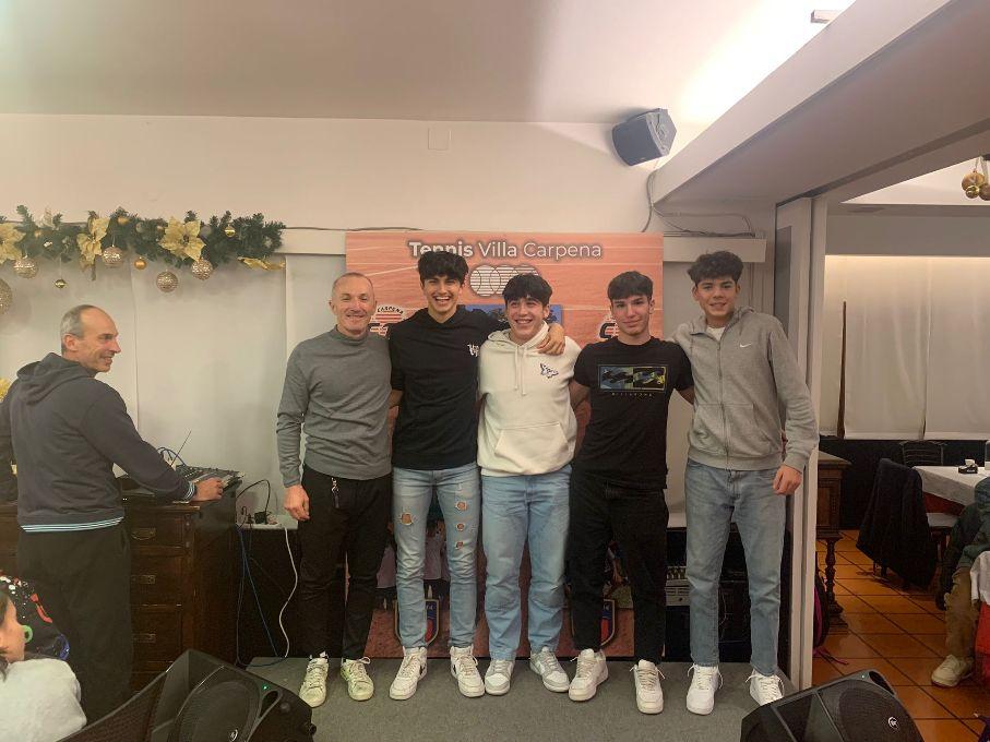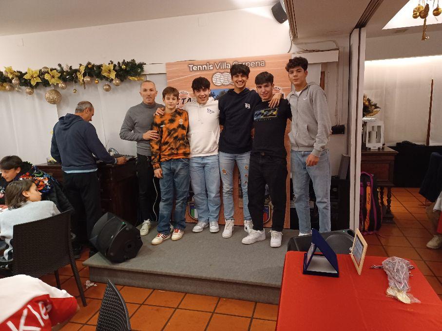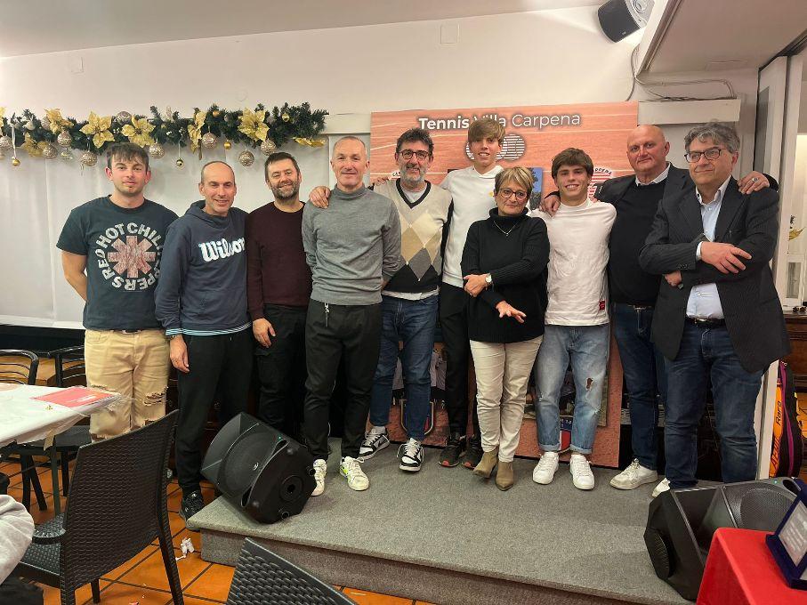 Partenza sprint con le premiazioni degli allievi della scuola tennis effettuate dalle maestre Sara Pretolesi e Valentina Picchetti, con il direttore della scuola, il maestro Alberto Casadei. Una sfilata gioiosa di bambini e ragazzi dal minitennis all’Under 12, impegnati in vari tornei interni, piccoli giocatori che rappresentano la base tecnica del Circolo. Poi via alle premiazioni dei campioni italiani, i vincitori del titolo a squadre: Alex Guidi, Riccardo Pasi, Rafael Capacci e Marco Caporali. Non solo, Pasi e Guidi, giocatori che hanno frequentato con notevoli risultati quest’anno il circuito Itf Junior, si sono laureati pochi giorni fa campioni italiani di doppio Under 16, con Guidi semifinalista in singolare. Nel complesso è stata una stagione fantastica per tutto il settore tecnico, basti pensare alla promozione in serie B2 della squadra maschile composta da Lorenzo Angelini, Riccardo Ercolani, Filippo Caporali e Christian Capacci ed in serie C della formazione composta da Jamal Urgese, Rafael Capacci, Riccardo Briganti, Riccardo Pasi ed Alex Guidi. Riconoscimenti alla grande stagione di due punte dell’Accademia, Carlo Alberto Caniato che ha giocato a livello Junior due Slam, Wimbledon e Us Open, e Lorenzo Angelini in partenza il 4 gennaio per Melbourne dove giocherà gli Australian Open.