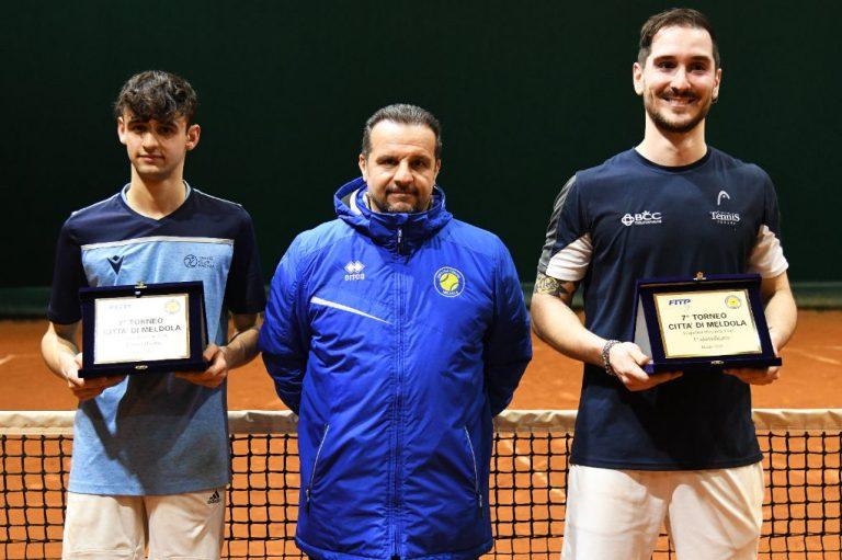 Finale tra Gian Marco Ricci (Ct Cesena) e Tommaso Servadei (Tc Faenza) nella settima edizione del trofeo “Città di Meldola”, torneo maschile per 3° categoria organizzato con successo dal Ct Meldola. Il successo, nel match-clou andato in scena mercoledì sera, è stato ad appannaggio di Ricci che si è imposto per 6-1, 6-2. In semifinale Ricci (3.1, n.9) ha battuto 6-7 (4), 6-2, 10-8 il 3.1 Andrea Valli (3.1, n.4), mentre il 3.1 Servadei (n.3) si è imposto per 6-4, 4-6, 12-10 su Alessandro Naso (3.3), portacolori del Ct Cesena. Le premiazioni sono state effettuate dal consigliere del Ct Meldola, Fabio Di Tante.
