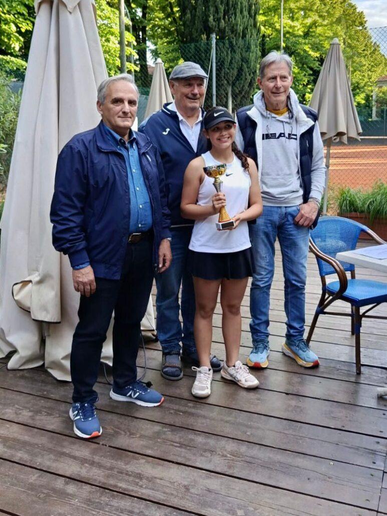 Nel femminile la prima a raggiungere la finale è stata Elisabetta Pastore. La portacolori del Tc Riccione, testa di serie n.1, ha battuto in semifinale per 7-6 (0), 6-0 Sophia Zoumbare, poi nel match-clou ha ceduto per 6-2, 7-6 ad Estefania Alexandra Leanez Nunez (Tennis Modena).